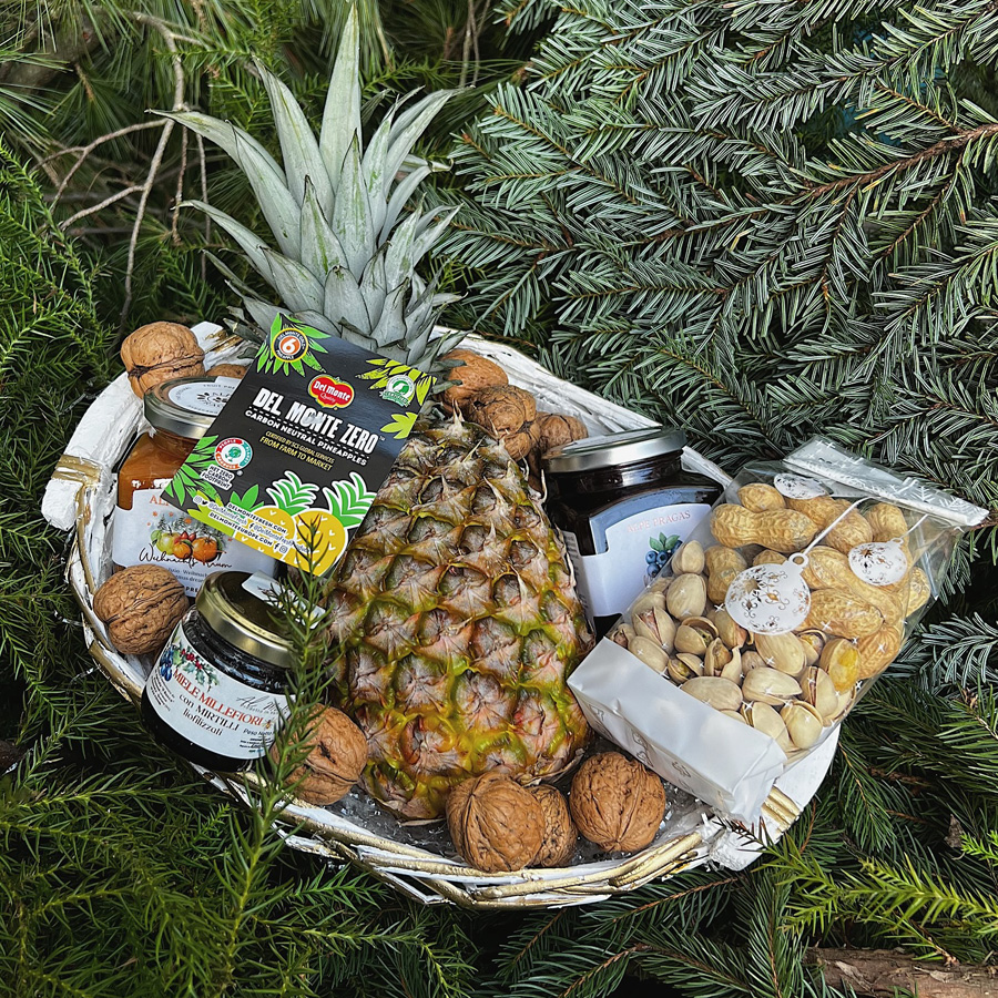 Confezioni e cesti di frutta e verdura, accuratamente selezionata e colta al giusto punto di maturazione, provenienti da coltivazioni biologiche e da agricoltura controllata.